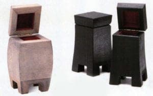 Cases, presentation systems and flexible packaging - packing and unpacking should be fun and somehow resemble the discovery of a sweet secret. Petra Ohnmacht, qualified designer and goldsmith, has been designing boxes and packaging tailor made solutions to suit customer wishes for seven years now, and her fantasy appears to be sheer boundless. Whether she draws on precious wood from the pear trees or solid beech, a combination of paper and velvet or a warming coat of felt, her boxes play host to the most precious items; irrespective of whether they are enroute or in a shop window, they are protected and safe. Clear design such as the presentation system "Clerk", which won the "Design Plus" prize from the Frankfurt Trade Fair "Ambiente" in 1999, or playful ideas like the jewelry wrapping "Teabag" or "Piggeldi", transform the imaginative and creative jewelry housing itself into favorite items.