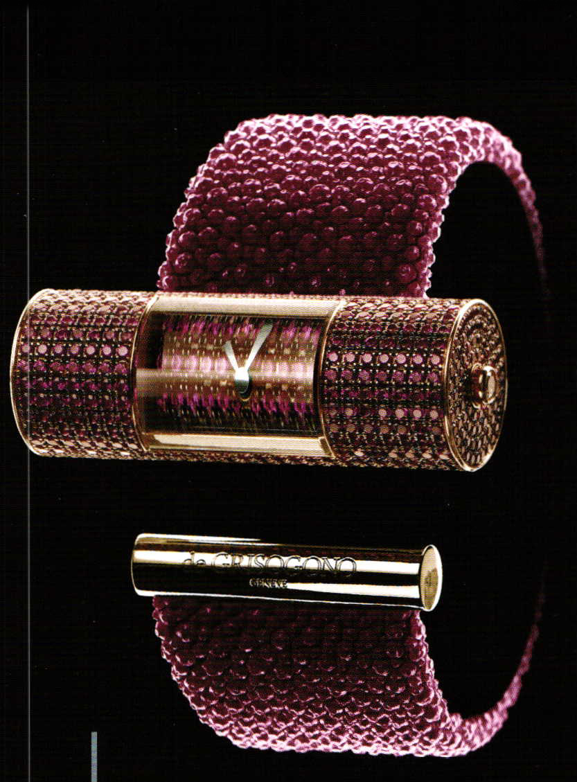 The watches by de Grisogono from Geneva are no less luxurious. Large, extravagant, technically demanding and beautifully crafted, they do not hide their charms under a bushel. The hand of the jeweler and owner, Fawaz Gruosi, who founded de Grisogono in 1993, is plain to see in the sophisticated, bejeweled watches. With his label, Gruosi initially created glamorous, exalted jewelry before he presented the first watches in 2000. Gruosi creates trends in both disciplines: For instance, he elevated the black diamond from the furtive to celestial fields in the world of jewelry. He even gave his first watch, the "Instrumento No Uno", a stately housing that domes slightly as it nestles round the wrist. A spectacular novelty is the minute repetition "Occhio Ripetizione Minuti", whose dial is hidden beneath lamellas, like a lens on a camera, it opens and closes whenever prompted. Gruosi also composed the delicate "Lipstick" to grace female wrists, where its bursting colors and jewel encrusted surface truly does its name proud.
