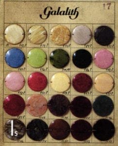 The numerous advantages of galalith soon became apparent. It was fast and inexpensive to produce and was also easy to process. The milk stone could be cut, drilled, embossed and even dyed in any way without difficulty, thus producing gemstone imitations that looked strikingly real. No other plastic at the time could compete with this wealth of favorable characteristics. It is therefore hardly surprising that huge quantities of milk literally flowed into the production of galalith at the start of the new century: in 1913 30 million liters of milk were used to produce galalith in Germany alone. It was marketed in the form of boards, pipes and rods.