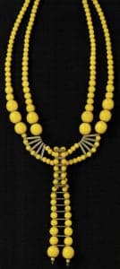 Galalith, the material made of milk, reached its absolute golden age shortly before the Second World War. Shortly after this, the production of galalith for jewelry purposes was initially restricted and then even banned. Upon the outbreak of war, milk was needed primarily for daily nutritional requirements, while the residual production of galalith was primarily for electro-technical purposes. After the end of the war, the material was suppressed by modern plastics that could be cast and heat-molded.