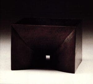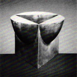 William Underhill didn't confine this compact geometric expression only to lidded forms. He also used it in such open vessels as Knife-Edge Pendentive, and Triangle Yantra, both 1984. Unlike the earlier "pinched" bowl on a cube, these exist as hollowed chunks, rather than stretched membranes. Expansiveness is replaced by weighted mass. Instead of reaching out and enveloping empty space, their austere proportions compress it into surfaces and intervals of dense form.