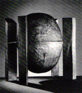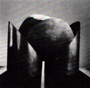 Despite these apparent weaknesses, however, these early forms contain the seeds of the compelling organic geometry that emerged later. For they manifest few pure shapes. Spheres are always slightly Parabolic—as though stretched by some hidden pressure. And the walls of the flared vessels don't graduate evenly. Their bulges and spirals convey the impression of viable growth. One senses that their surfaces contain the potential of living forms.
