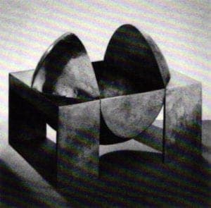 As with Hips or Kabuto, they compel the eye by their matter-of-fact anatomy, whose configurations are self-defining. For they express simply the physical requirements of their merged shapes. Pendentive reveals the transformation of a cube into a dome and then the accommodation of that inverted dome atop another cube. Yantra shows the extraction of a prismatic core from a hemisphere. The prism is both surface and hollow—a riddle that keeps the eye moving inside and out, constantly weighing, measuring and trying to figure the small difference.