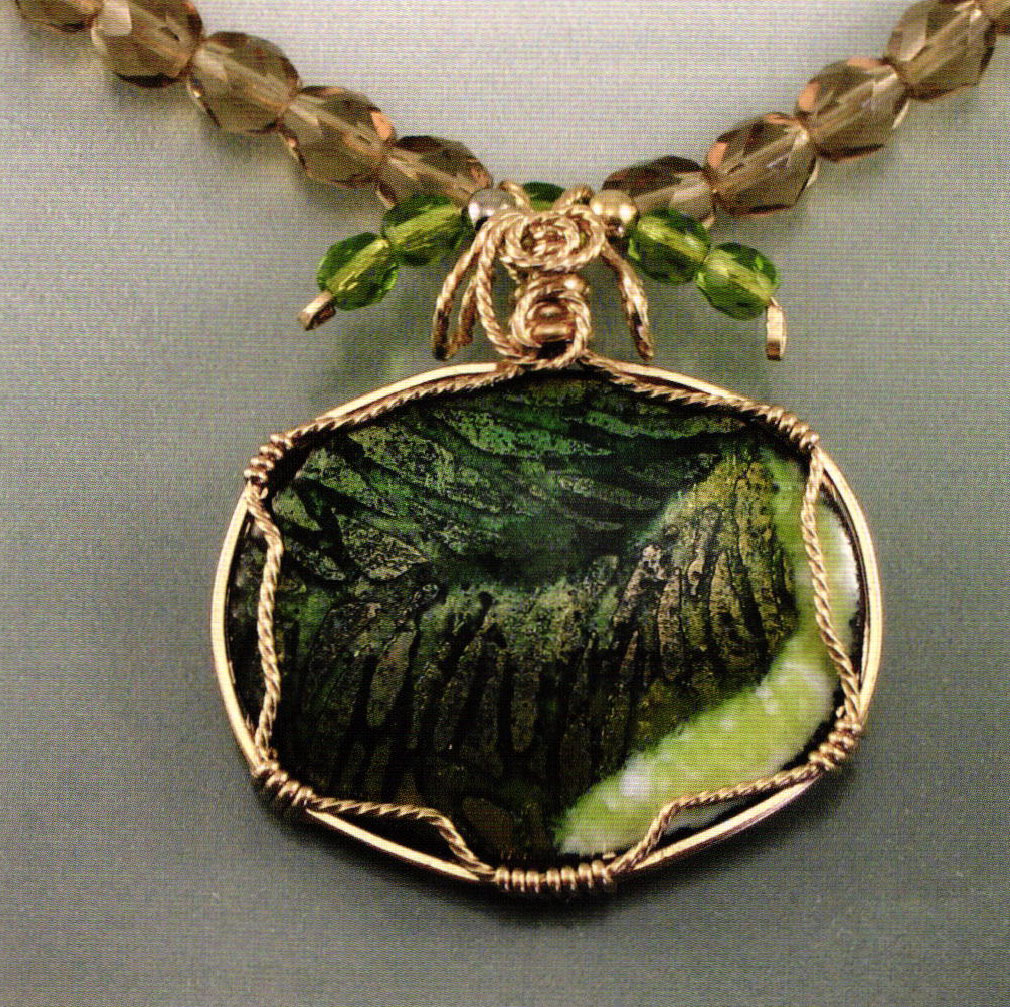 Everyone has long seen gems wrapped in small wire cages with hanging devices, and more recently, the Dichroic glass pendants with their caressing wire sculpture made into a bail for hanging on a chain or neck ring. They do provide a light weight addition to 3-dimensional shapes, making them functional to be worn.