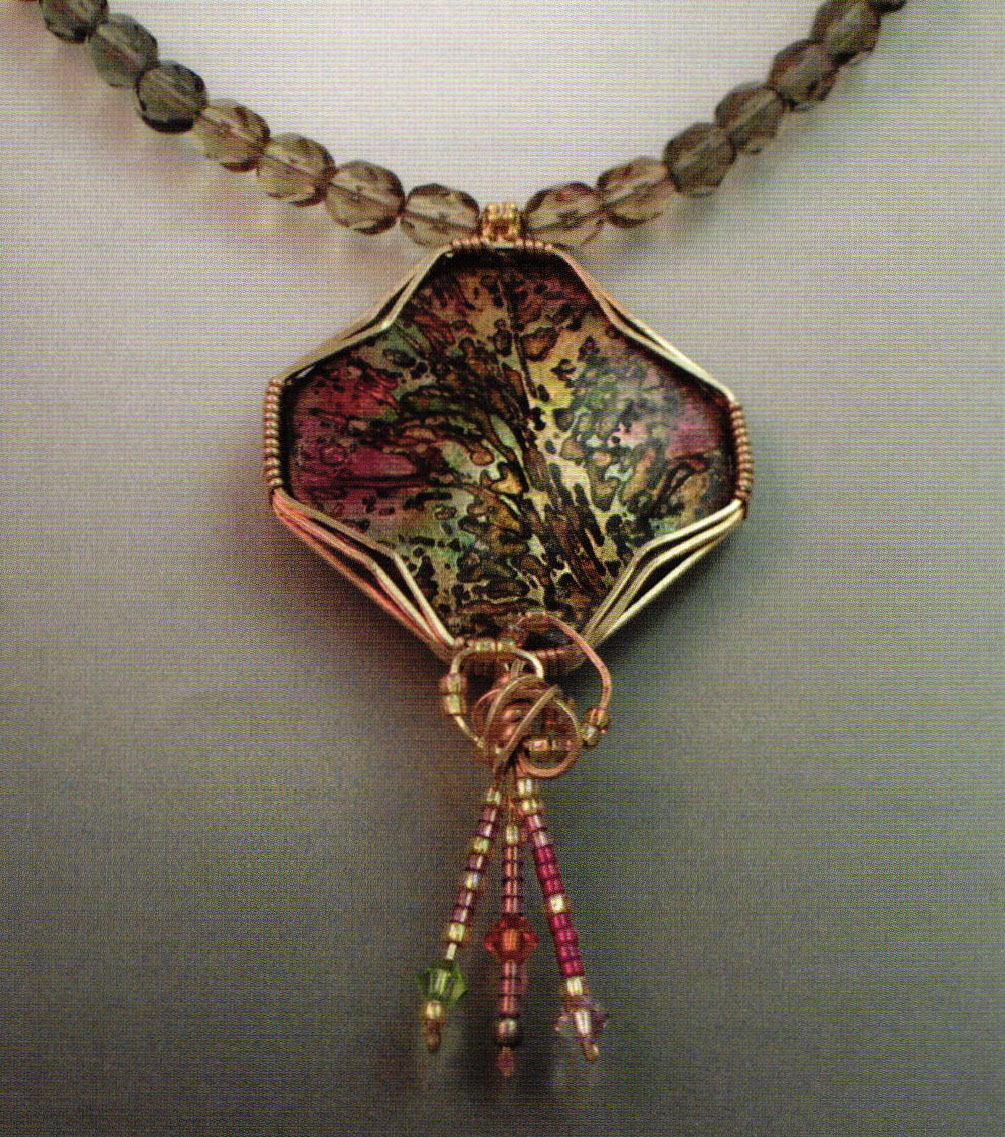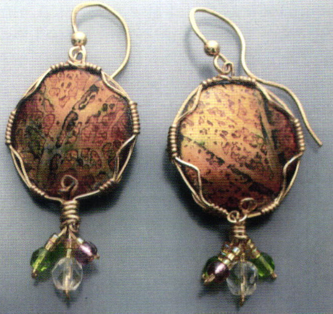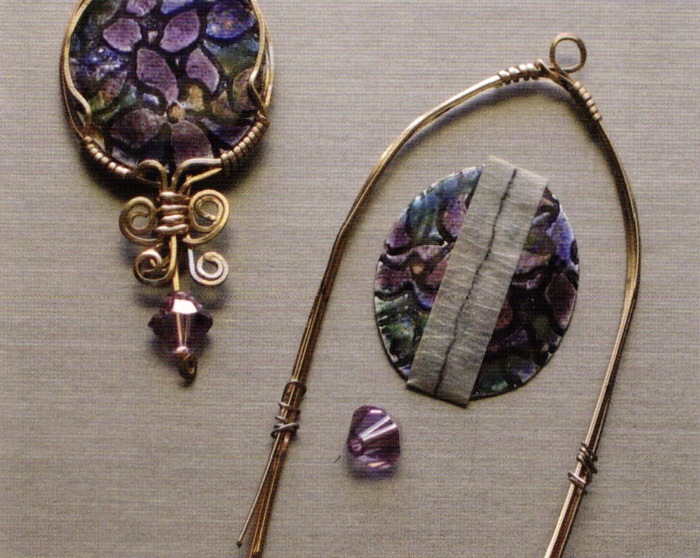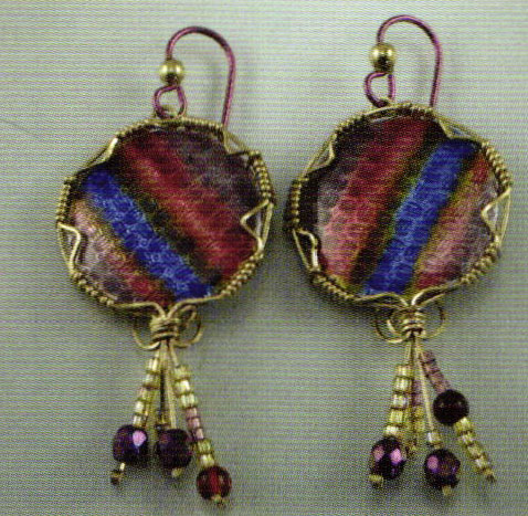 So why not try that with enameled, slightly domed copper or silver pieces, provided that they are sturdy enough and enameled perfectly on both sides. The backs will be open in contrast to the traditional fabricated bezel settings.