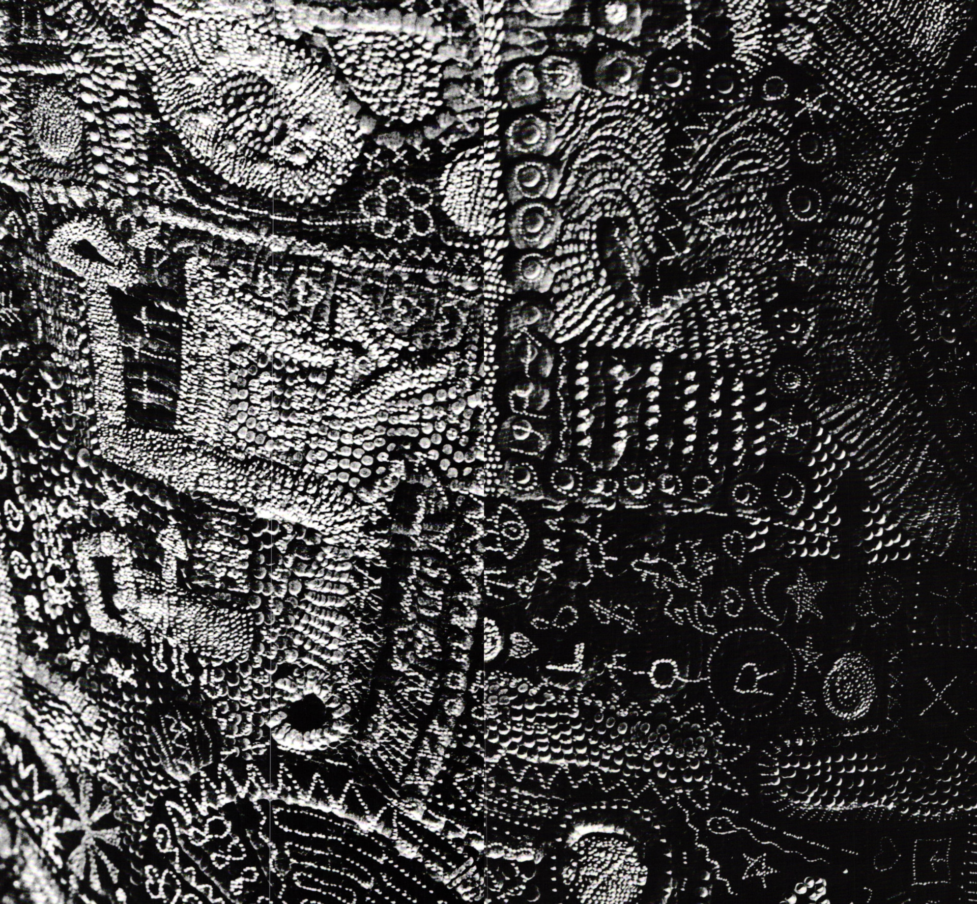 Noffke's style is nonverbal, nonliteral and probably unconscious, but a style nonetheless. It is not meant to be systematically analyzed but to be appreciated as material evidence of Noffke's working time. Though some of the iconography is familiar, it is incidental as a result of Noffke's free use of any available shape and image provided by the culture. He is trying to debilitate our need to read the work in favor of an intuitive response. If we must, we could find a relationship with anonymous graffiti, ancient hieroglyphs, as well as the accidental effects of wear or tear, or even, in the most surreal, a product of automatic writing. But no matter, that course of inquiry will lead nowhere. Noffke is intent on confronting our inhibition toward appreciating the object for what it is. Even though we don't know why or when the maker produced this artifact, or that it was made for the maker's own delectation, shielded from interpretation, it is valid because it exists and becomes part of the material culture to be used and cherished.