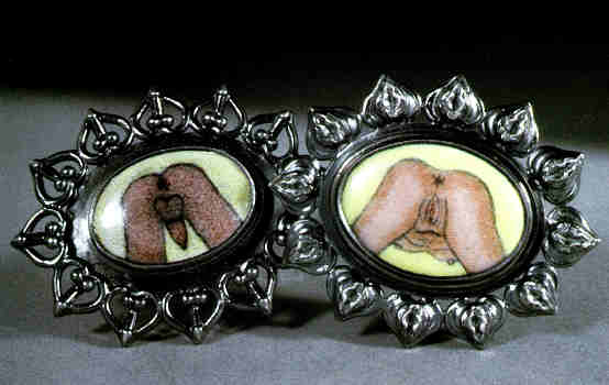 | Boy and Girl Spread (pins), 2001 Sterling silver and limoges enamel Each 1 3/4 x 13/8 x 1/4″ Photo: Keith Lewis |