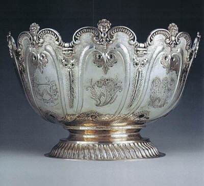 | Monteith, 1985 design based on an 18th-century Irish original Britannica standard silver 8 1/2 x 14″ Photo. Robert Hurling |