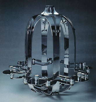'Taking the work as it comes" has resulted in an extraordinarily varied body of functional silver work and now, at Frederick's age and level of experience, there is practically nothing that he cannot make in silver. Silver objects have historically been intertwined with ritual, and Frederick has produced numerous objects within that category - including liturgical vessels (more than 400 commissions for religious chalices), commemorative trophies for corporations, reproductions of historical silver objects for individuals and associations, and the heavy, engraved chains worn by university presidents during ceremonies.