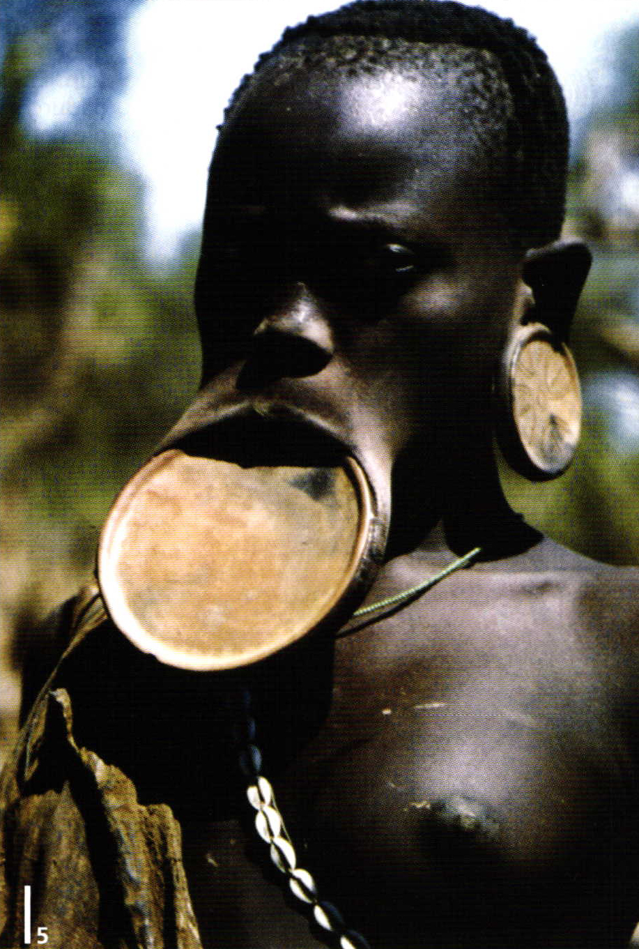But paint is sometimes just not enough. The women in the African Mursi tribe, for example, believed that mouth plates were the very pinnacle of idealized beauty. Once the girls are of marriageable age, a hole is pierced in their lower lips and a wooden stake is driven through. Over time, increasingly large implants expand the soft skin, until finally a disc the size of a pizza fits in it. A woman's attractiveness rises, the larger the plate.