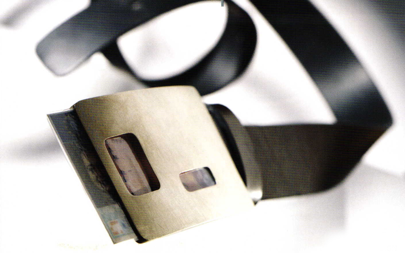 The third category produced interesting results under the topic of "Free time jewelry for young men and women". The pin-on jewelry by Anna Nurminger from Gunzenhausen can help single people still on the look-out. The variable play of colors can signal a particular mood and status of the liaison to potential flirting partners. Magdalena Boch from Billerbek developed a belt for going to parties and discos. The buckle is fitted with several compartments for storing your ID and keys. Rectangular openings where the wearer can insert ID, thus displaying the portrait photo and name, enable the wearer to prove their identity or communicate with others. A discreet alternative to the conspicuous name badge at singles parties? The winning entries can be seen on an exhibition wall.