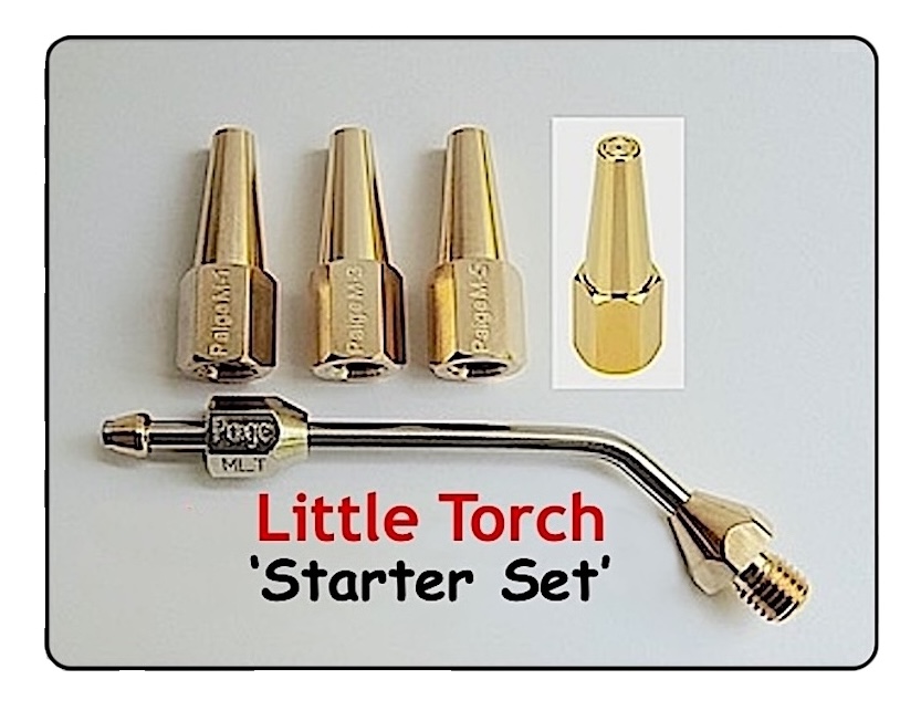 Pictured: Our 6, M series Tips. Two Sets we offer, Special MA-1 Rosebud & MX melting Tip, special Adapters we make, etc. Our slogan: Make the Little Torch MIGHTY ™ -other Torches too- is exactly what Paige products do!