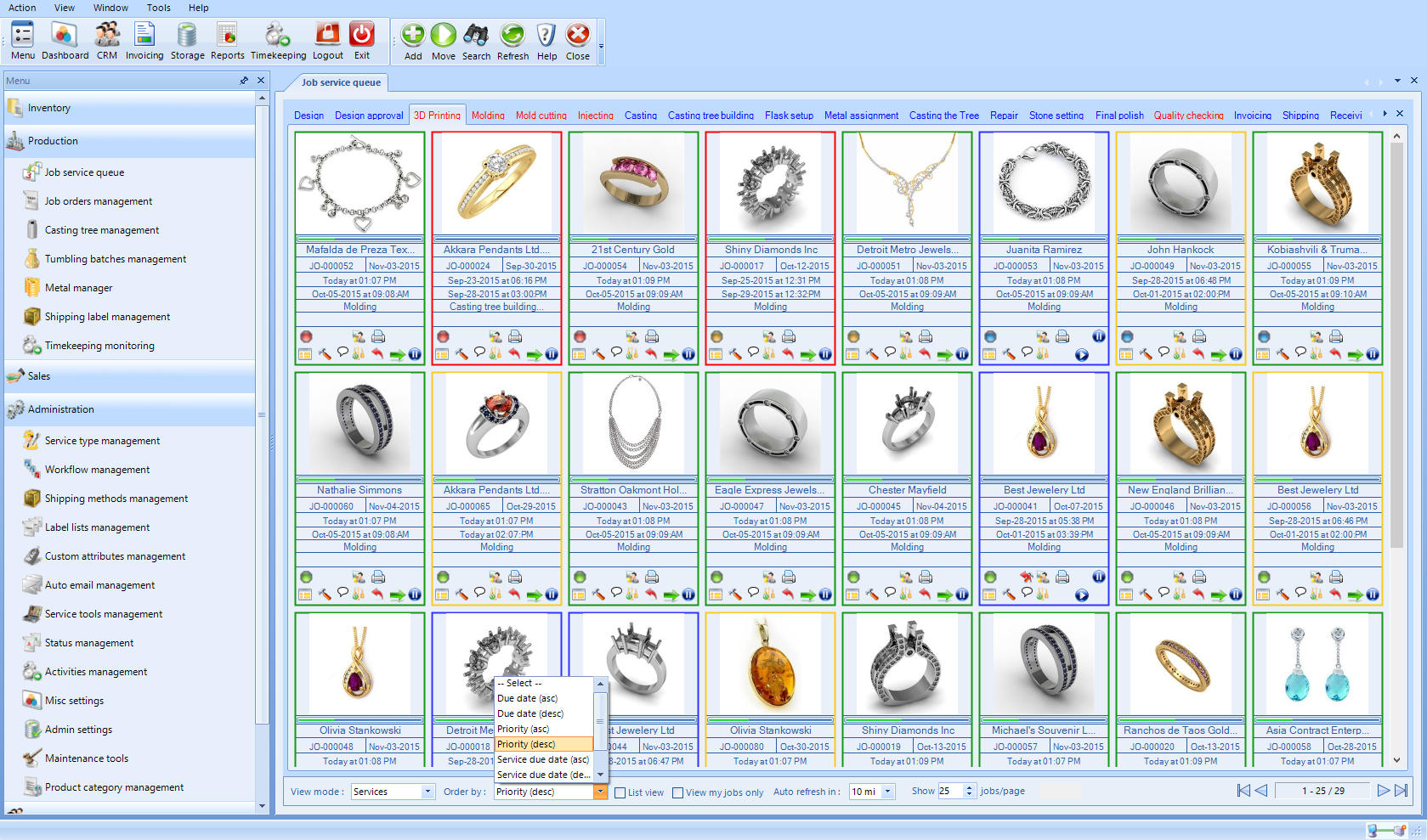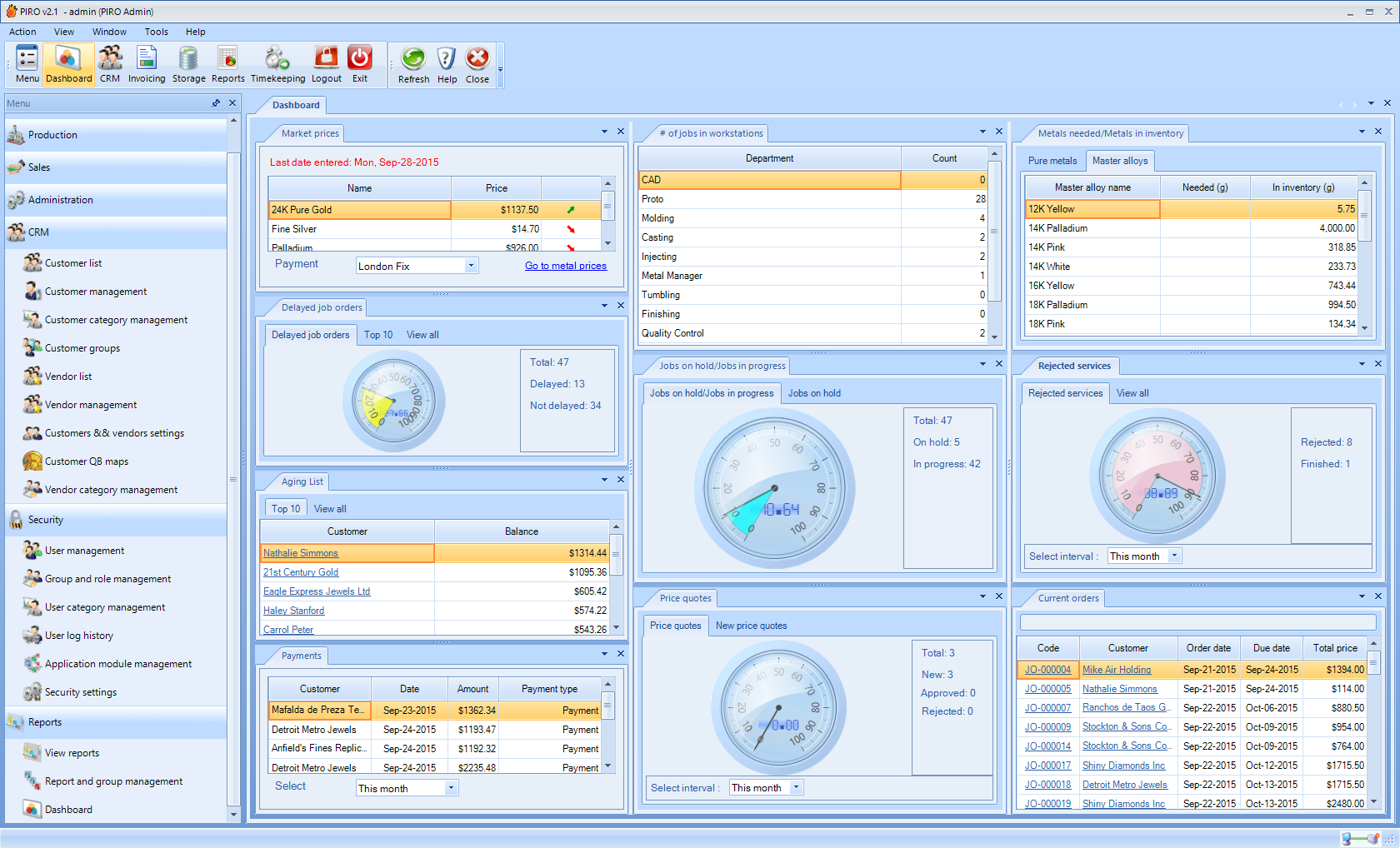 PIRO is one of the most comprehensive jewelry software solution that integrates the production tracking, inventory management, customer management, sales and invoicing into one platform. The PIRO customer portal, connected to PIRO, is another great tool, allowing your customers to create price quotes and place orders online, as well as follow the progress of their orders in real-time.