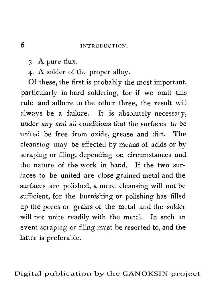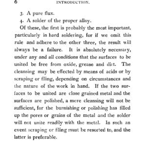 There is a very clear discussion of fluxes, what to use, when appropriate etc. The same with solders, making your own, alloys for solders, constituents and more. The section on alloys has many recipes. Carbon (graphite) ingot molds and crucibles are described and pictured, with automatic systems for melting and tipping. There is a scathing critique of general work quality in soldering and repair. This author would have been in heaven to have had a laser or a fusion welder.