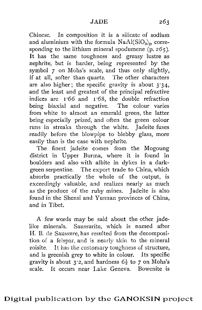Ornamental Stones: Fluor, lapis, sodalite, violane, rhodonite, azurite, malachite, thulite, marble, aposphyllite, crysocolla, steatite, meershaum, serpentine.