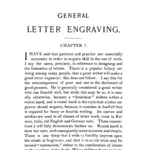 If you want to learn how to engrave letters, monograms and writing this great book is an excellent guide. This 1892 book addresses what was then a decline in the education of apprentices, and was intended to give aspiring engravers a way to successfully self educate as a letter engraver. Interestingly for its time it was intended for females as well as males: