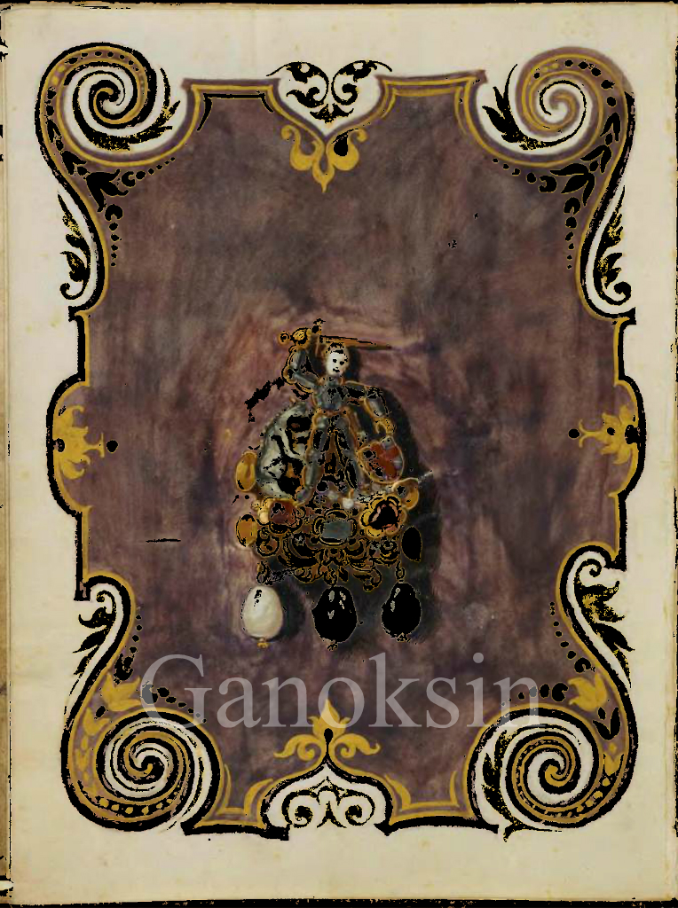 This unique manuscript was commissioned in 1552 by Duke Albrecht V of Bavaria, the founder of what is today the Bavarian State Library. The manuscript is an inventory of the jewelry owned by the duke and his wife, Duchess Anna, a member of the Habsburg dynasty and a daughter of Emperor Ferdinand I. The work contains 110 magnificent drawings by the Munich court painter Hans Mielich. One of the most impressive of these drawings is the front page miniature showing Albrecht and Anna playing chess, with Albrecht portrayed as a Knight of the Order of the Golden Fleece. Because of its outstanding importance as a work of art, the manuscript was kept in the private ducal and electoral Chamber of Artifacts for almost three centuries — long after the originals of the jewelry depicted had been lost. Only in 1843 was the work presented to the Bavarian State Library by King Ludwig I.