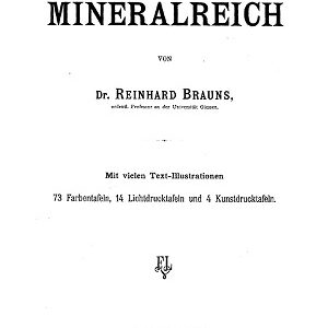 The Mineral Kingdom, 1903 (original German edition), by Dr. Reinhard Brauns (1867-1937) 445 pages + 177 Color plates Dr. Reinhard Brauns was born on August 20, 1867 in Eiterfeld near Kassel, Germany. Reinhard published numerous contributions to Mineralogy, Crystallography and Petrology and to the fields of optical anomaly of crystals, the chemical mineralogy and the minerals and rocks of the volcanic areas of the Eiterfeld, Germany.