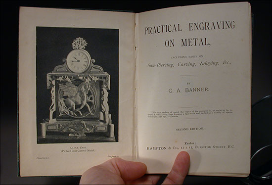 The book ends with images and descriptions of clamping and holding tools for engraving, as well as tricks and tips. Interestingly he credits the engravers ball as an American invention. There is an appendix that covers cleaning copper plates, annealing them, hardening them after engraving, making printers ink, removing stains from paper, unacceptable lead based glue to attach paper to metal, a recipe to make chasing and repousse pitch, taking smoke prints of engravings (still used today-but with cello-tape),