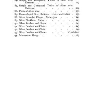 This 1910 book is a hefty 300 pages packed with great information on jewelry history and making jewelry. There are 94 illustrations, both photographs and engravings. The term ‘simple jewelry’ seems to connote what we would call ethnic or folk jewelry today, as well as addressing basic metal working skills for making jewelry. It has the best information around on twisting metal and wire curling for chains and decorative elements.
