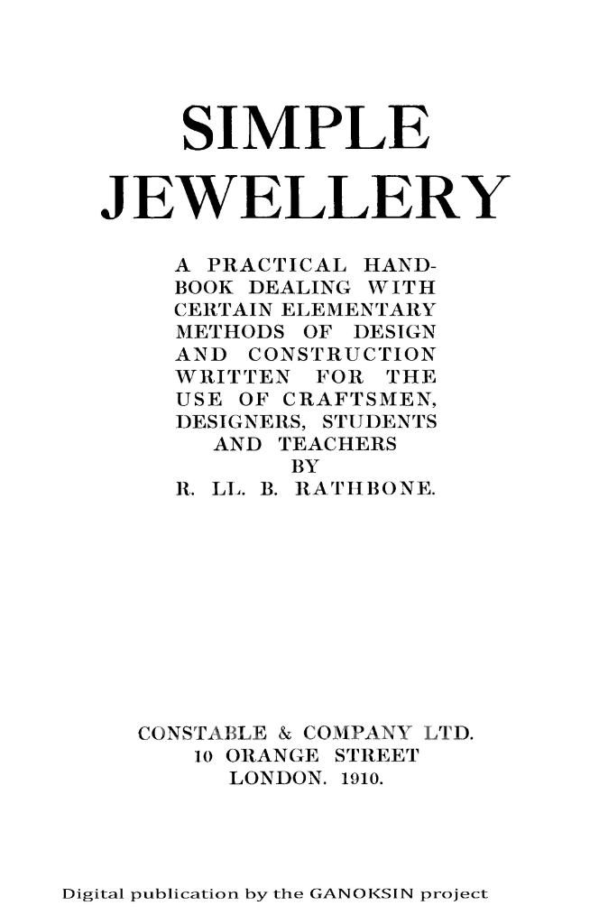 Simple Jewellery by R. LL. B. Rathbone, 1910