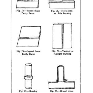 There is a large chapter on using ‘spelter’, that is brass powdered as brazing alloy mixed with borax flux to join steel, copper, brass, even cast iron. More information on making torches and a ‘brazing pot’ is included (Mind you there was a lot of asbestos used back then, we would use other materials today). Brazing tips include wire brushing superfluous brazing material off the top of a joint while it is still hot in order to save filing and cleanup time.