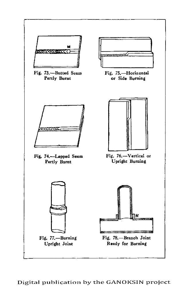 There is a chapter on forge welding iron and steel. Electric welding and thermite welding (with recipes) are addressed. There are even instructions on how to cast iron into sand molds by burning out a wax model with thermite, again something I have never seen described. Oxy-acetylene welding for steel, iron, cast iron, aluminum and copper is detailed: it is surprising how similar the equipment is to today, though many welders then apparently generated their own acetylene at the welding site. Flux recipes for all the metals are detailed. Lead ‘burning’ or welding to make homogenous tanks and surfaces for chemical and architectural use is dealt with.