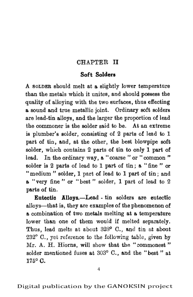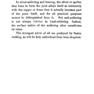 The excellent descriptions, definitions and pictures are very clear and understandable. There are some really interesting recipes and divisions of types of soft soldering. The section on soft soldering has way more information than any current book on the subject. The detail and images is very good.