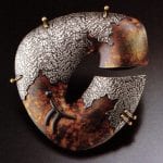 …search for an esthetic alternative. Jewelry and Beyond exhibited several new approaches to the field. Thelma Coles, Inner Stability, copper, stainless steel, 15 x 21 x 21½” Most clearly seen…
