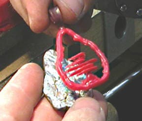 With a wax build-up, a jewelry maker can create a casting model around a gem or other object to be included in the piece. Learn this technique here.